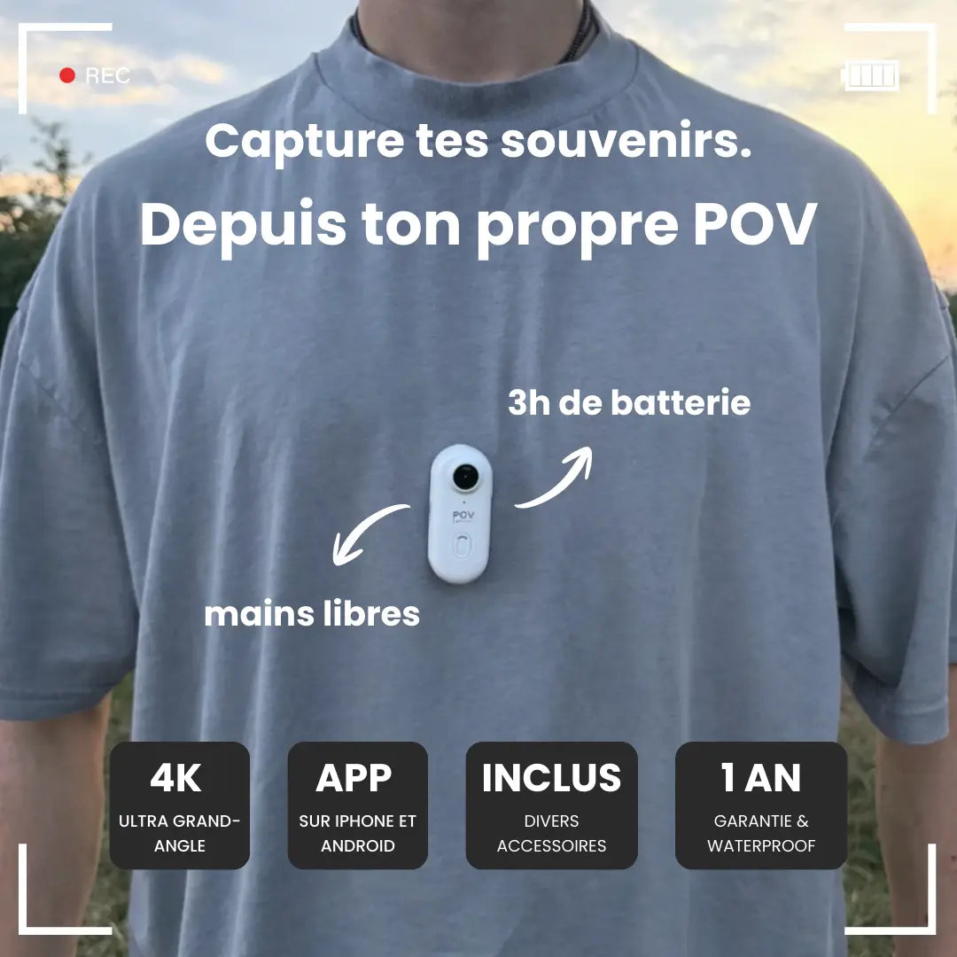 POV Pro vous permet de capturer vos aventures sans jamais interrompre l’instant. Pas besoin de tenir une caméra, de sortir votre téléphone ou de réfléchir au cadrage.