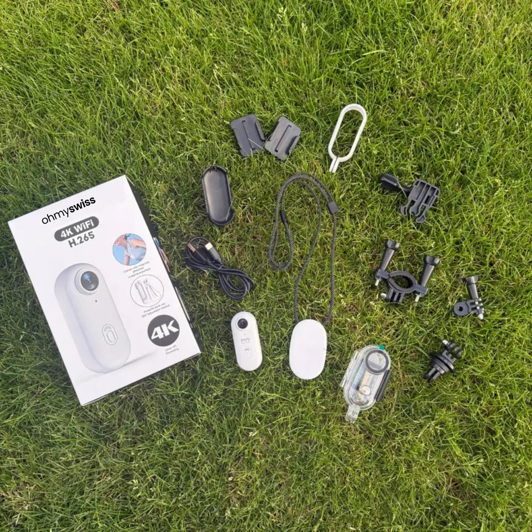 Tu clipses la caméra sur ton t-shirt, ta veste ou via les accessoires inclus, tu appuies sur un bouton (ou commandes vocales), et tu filmes.