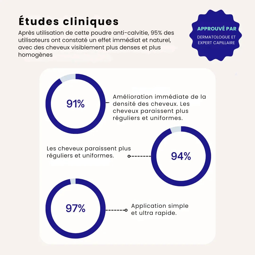 Oui, la Poudre anti‑calvitie OhMySwiss™ convient à tous les types de cheveux : lisses, ondulés, bouclés ou crépus, et même très courts. Elle se fond dans votre texture naturelle et reste en place, que vos cheveux soient fins ou épais.