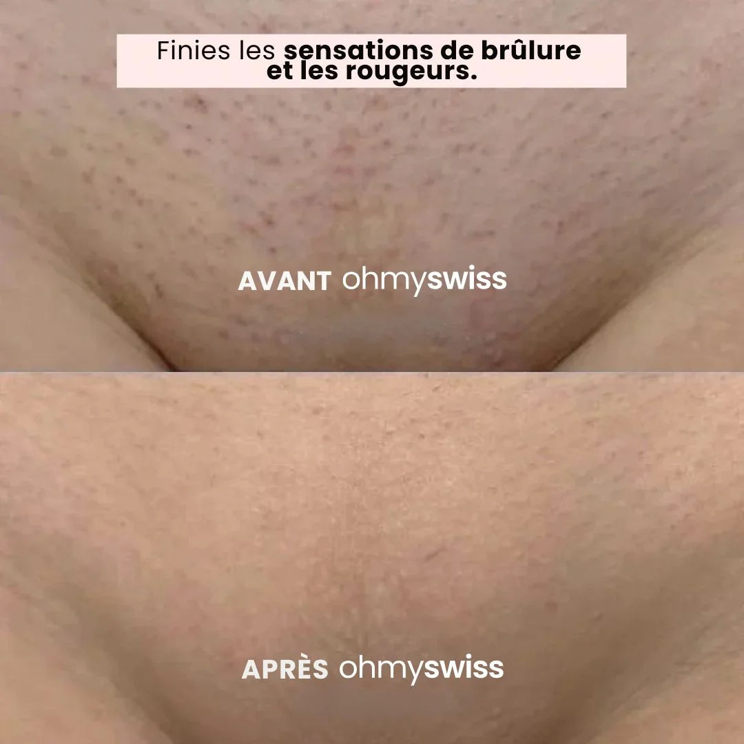 Oui. OhMySwiss™ est conçu pour être doux, y compris sur les zones les plus sensibles comme le maillot ou les aisselles. Grâce à son format 2‑en‑1, vous obtenez un rasage net tout en limitant irritations et rougeurs.